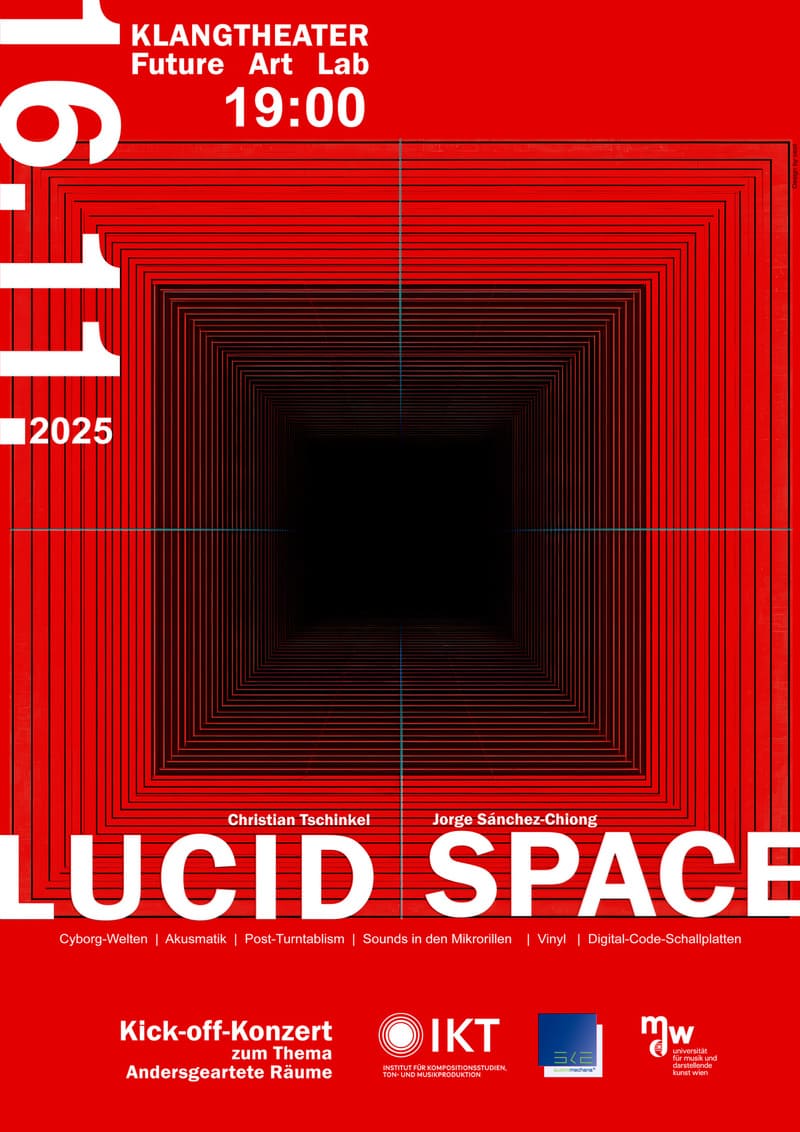 • 16.11.2025, 19h00: LUCID SPACE. Ein Kick-off-Konzert zum Thema „Andersgeartete Räume“ im Klangtheater der MDW, Wien